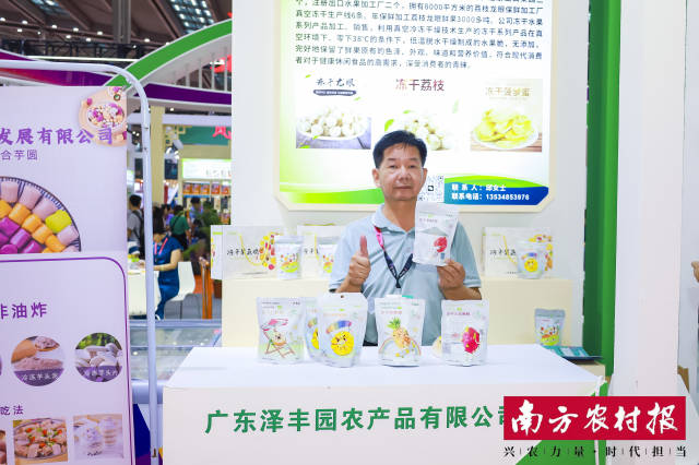 “广东农产品很棒!未来希望能建立合作关系,从你这里采购冻干荔枝脆、冻干龙眼脆等优质产品!”来自越南的采购商品尝了广东泽丰园农产品有限公司(下称“泽丰园”)的冻干荔枝脆后,现场向泽丰园董事长林波发出了合作邀请。