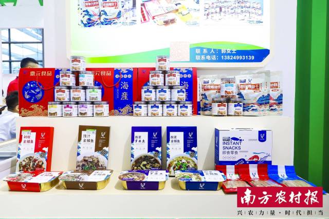 这些水产食品均来自广东鼎元食品科技公司(下称“鼎元食品”)。在鼎元食品展位上,前来品尝鳗鱼干的人络绎不绝,鼎元食品工作人员一边往试吃盘里添加鳗鱼干,一边向买家介绍水产预制菜产品。