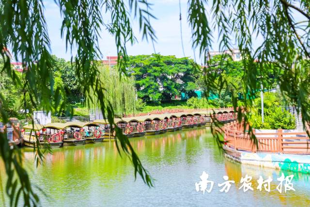 仲秋时节,佛山市紫南村紫南赋文化广场。凉爽的秋风轻抚岭南水乡的建筑肌理,村中蜿蜒的河道泛起阵阵涟漪,河中倒影满是挺拔高大的榕树。