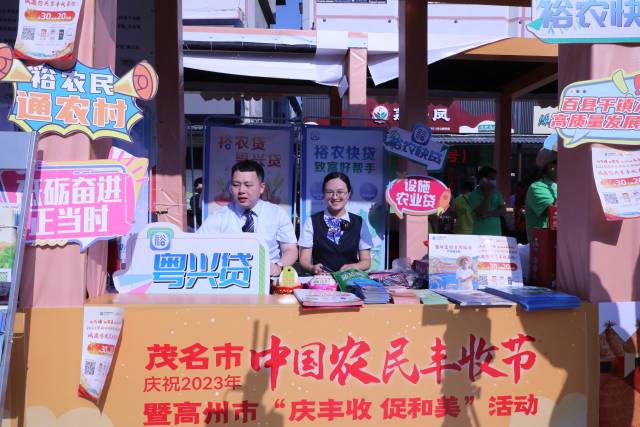 9月23日下午,茂名在中国荔枝产业大会永久会址举办金融支持土特产助力百千万高质量发展——茂名“五棵树一条鱼一桌菜”产业企业融资对接会,引导金融活水精准滴灌到乡村振兴重点领域和薄弱环节,解决农业龙头企业、农民合作社等新型农业经营主体融资难题,助力农业增效、农民增收、乡村振兴。9月26日,茂名组织各大金融机构在高州根子镇柏桥讲堂举办宣讲活动,向镇村两级基层干部宣讲金融支持乡村振兴政策,与基层干部面对面沟通解决“百千万工程”难点痛点,打通金融服务农村“最后一公里”。丰收节现场,建设银行茂名市分行联合人保财险茂名分公司、太平洋财险茂名分公司共同为农户授信,农户们喜获“金融大礼包”,更增加了致富奔康的希望。