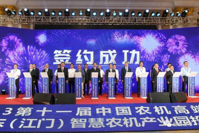 此次论坛的重头戏,是21个项目现场集中签约落户广东省唯一正式获批的广东(江门)智慧农机产业园,总投资超68亿元,涵盖农机装备制造、农机科技创新、海洋牧场、运营服务、农业金融等类别,贯穿农机研发、生产、销售、服务等全产业链条。这是台山以实际行动推动农机事业加速起航的一大成果。