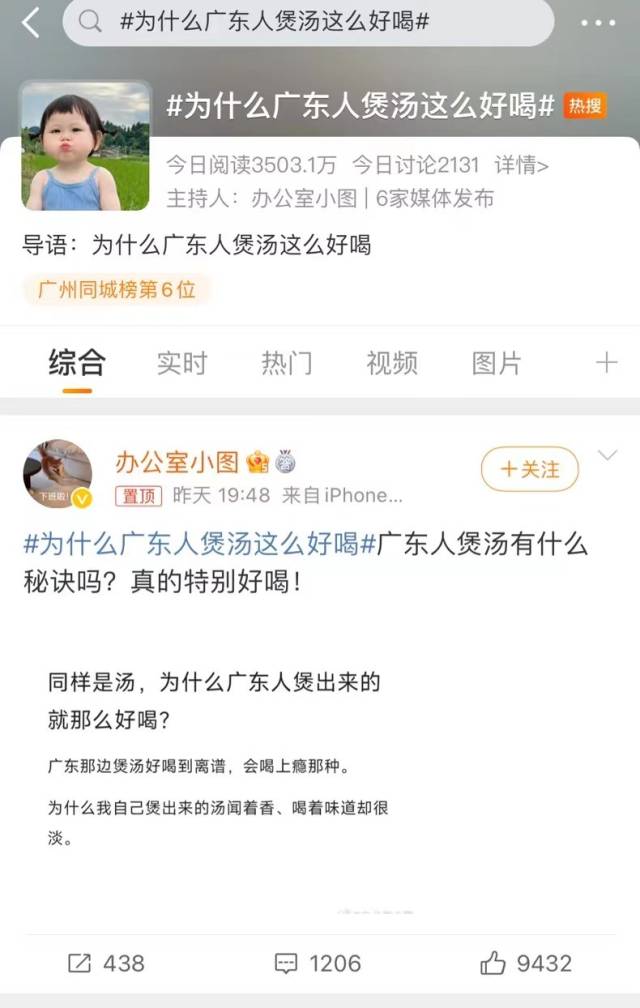 秋冬时节到了,滋补正当时。这次,广东又因为喝汤上了热搜。近日,微博话题#为什么广东人煲汤这么好喝 热度飙升,登上广州市同城热榜,单日阅读量超3500万。