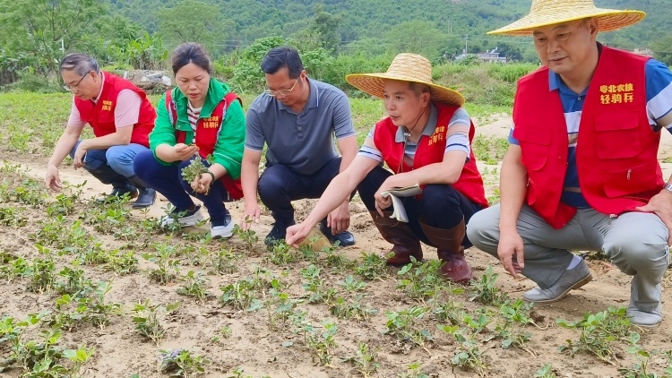韶关市农业科技推广中心支部副书记、高级农艺师邓冬梅(右一)