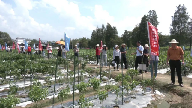 会期,参会人员来到江尾镇鹤仔村的广东省农业技术良种良法推广示范基地,现场观摩来自国内外新研发的300余个优新特色展示品种。