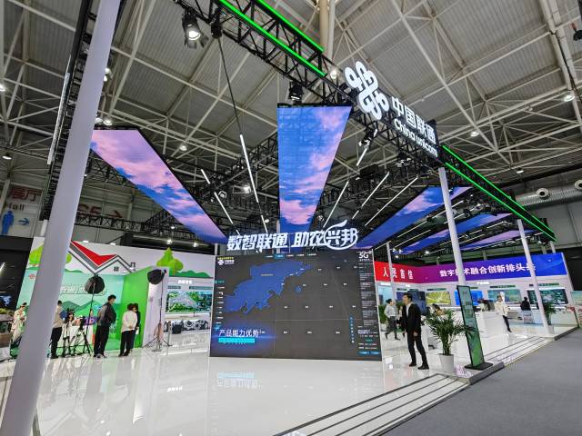 联通的展位分为“农事直通”“数村专区”“产业兴旺”“治理有效”四个部分,集中展示其在信息基础设施、公共支撑平台、乡村数字经济、乡村数字治理、信息惠民服务、智慧绿色乡村、乡村网络文化等领域,结合 5G、大数据、物联网、云计算、AI 等技术所提供的一体化解决方案。
