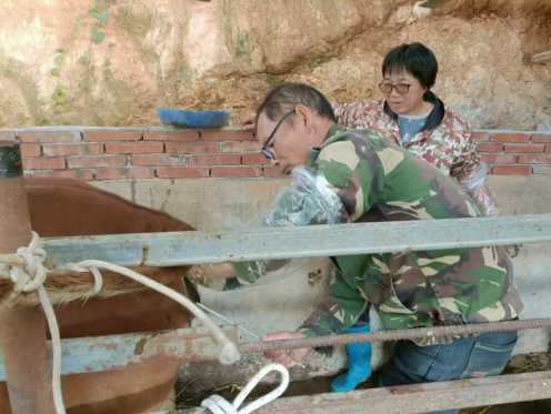 针对农户自繁自养黄牛生产性能低,该特派员团队提出对牛场进行品种改良,遂在牛场开展了肉牛人工授精技术现场教学培训。兽医师杨献超,手把手地传授牛场技术人员人工授精技术。农户学习热情比较高,经过半天的实践教学,技术人员感慨表示:学习到了一门新技术,养牛不仅是要养大,更主要是要科学的养殖技术指导,方能走的长远。