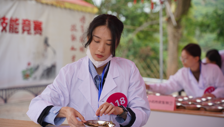 就在12月1日举行的2023年云浮市中药实用型技能竞赛中,黄锦梅在中药材鉴定师技能大赛摘得桂冠!她在主办方准备的250种中药材和饮片、80组包含正品及伪品的中药材中,这位抽签编号A8、来自云浮市新兴县新城镇仁爱大药房筠州路广场分店的姑娘,以179.0的高分脱颖而出。