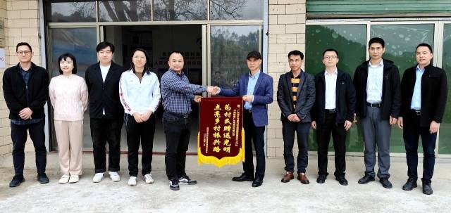 日前,为了对广东乡村振兴驻龙颈镇帮镇扶村工作队表示感谢,㘵田村委会为工作队送上了写着“为村民赠送光明,点亮乡村振兴路”的锦旗。