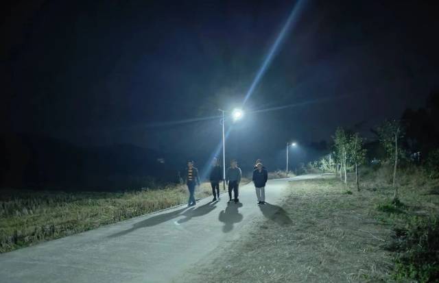 晚上七点半,一盏盏太阳能路灯把通往㘵田村委会龙家围和正坑村的村道照得亮堂堂。有村民正在路灯下散步,他们说,过去一到夜晚村道黑漆漆的,村民基本不外出了,现在饭后可以出来散散步,方便多了。平时开车出入,也更安全了。