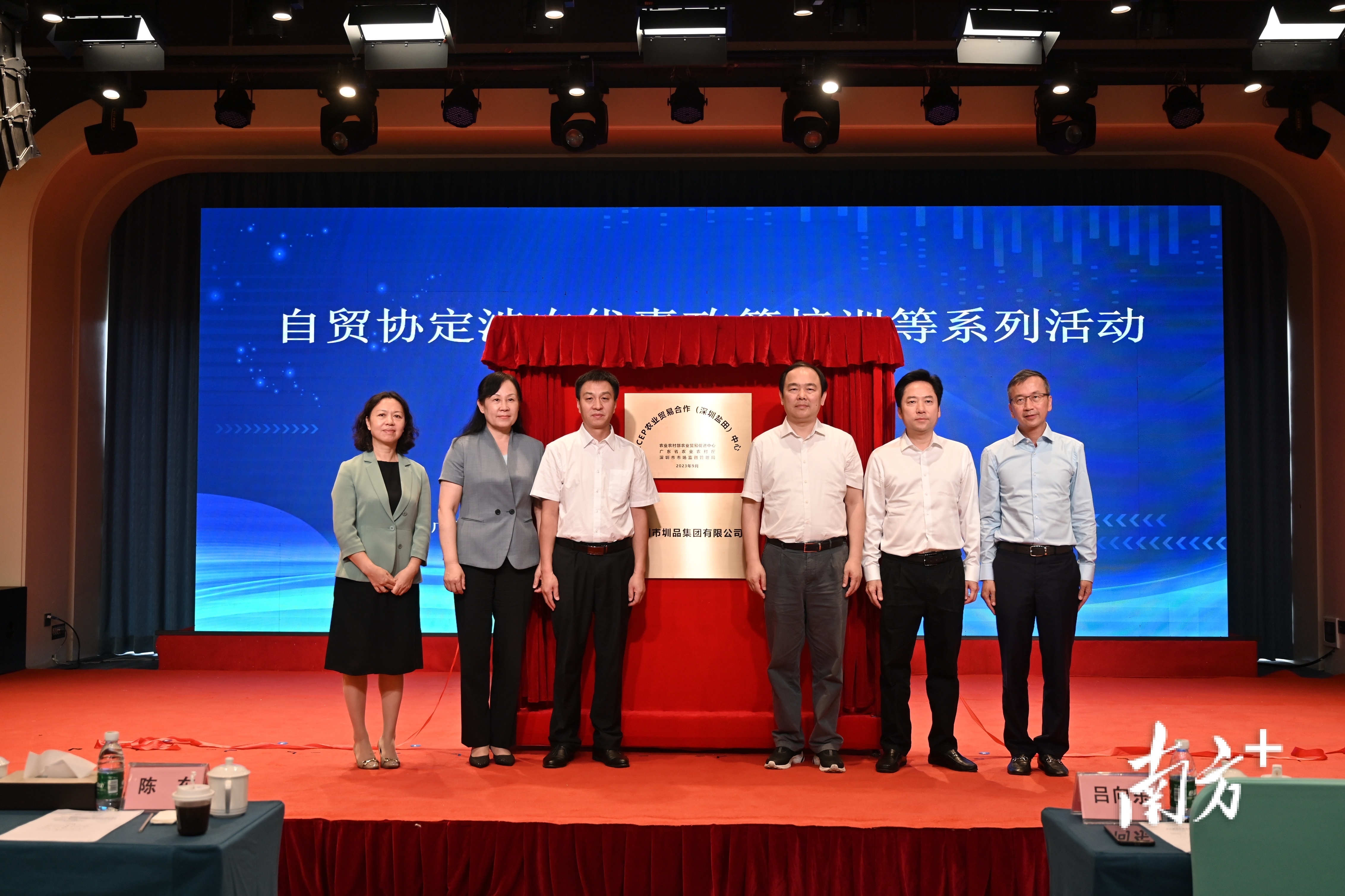 农业农村部农业贸易促进中心主任马洪涛,广东省农业农村厅副厅长陈东,深圳市盐田区委书记李忠,杨凌示范区自贸办主任苏亚文,潍坊国家农综区推进办党组成员、副主任于飞,共同启动国际农业经贸规则巡回宣讲活动。
