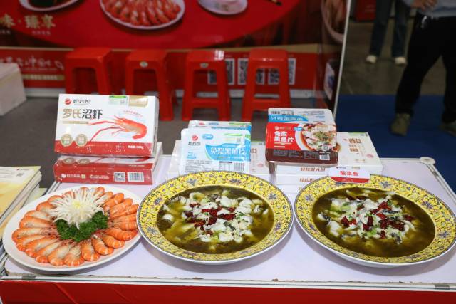 肇庆恒兴水产科技有限公司是广东恒兴集团有限公司旗下的子公司,是一家集水产科研开发、养殖、加工、销售为一体的上规模、上档次、与国际卫生食品接轨的现代化大型水产产品加工厂,水产品年生产能力可高达20000吨。公司参展负责人表示,“罗氏沼虾预制菜产自肇庆高要,这里养殖环境好,出产的虾个头大、肉质饱满,在市场上很有优势。”