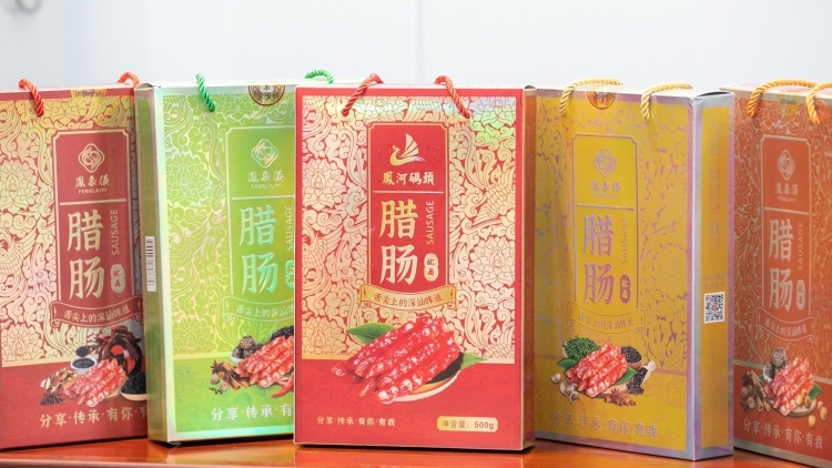 撕开包装袋,无需复杂的烹饪,将材料简单加热煮熟,不用长时间等待,浓郁荤香便萦绕于室内。“咦,这腊肠真的有黄皮果香,好新奇!”“口感浓郁,肉香中也带有黄皮味。”在郁南县都城坤记腊味加工厂的展位前,围满了参展的来宾。现切的黄皮腊肠,宛如琥珀般晶莹剔透,入口微甜又带果香,独特口味吸引了众多嘉宾驻足参观品尝。都城坤记腊味加工厂销售经理刘洪晖介绍,作为郁南本地的老字号腊味加工厂,自2015年公司首推无核黄皮腊肠后,市场反馈良好,产品认可度较高。