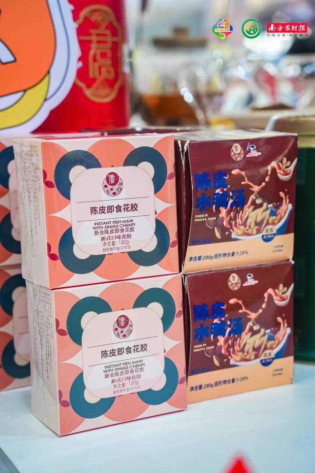 在江门丽宫的展位上,除了主打产品新会陈皮外,江门丽宫还带来了陈皮酒、陈皮青柑茶、陈皮即食花胶等陈皮衍生产品。据江门丽宫展位负责人介绍,挑陈皮要看产地,看色泽、看油胞、闻气味。其中以广陈皮为佳,广陈皮中又以新会陈皮为上品,清代大医师叶天士开药方“二陈汤”,便写有“新会皮”。作为“广货”的新会陈皮一路向北,如今在东北地区受到越来越多人青睐。