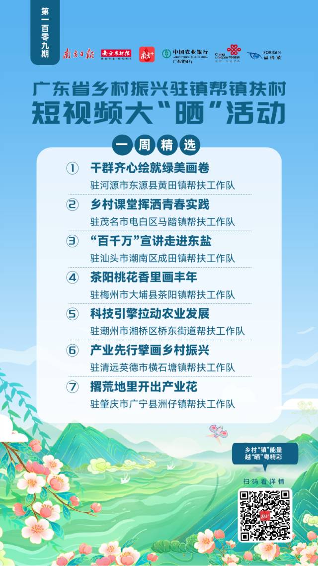 以“乡村‘镇’能量,越‘晒’粤精彩”为主题的广东省乡村振兴驻镇帮镇扶村短视频大“晒”活动于2022年2月全面启动。活动在南方+APP开辟专区,鼓励各驻镇帮扶工作队比“晒”行动做法、成效亮点、实事好事。主办方每周将精选出部分优秀参“晒”作品进行展播。无论是晒工作经验做法,还是秀驻镇风采人物趣事,均有机会上榜驻镇帮镇扶村短视频大“晒”一周精选,敬请垂注!