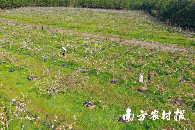 连州水晶梨花吸引游客入园观赏。