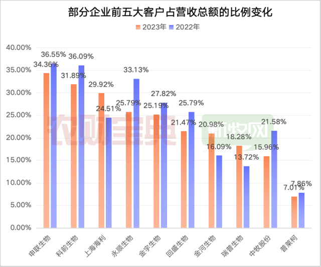 也依然有企业对大客户的依赖程度提升。如海利、金河、瑞普生物等。