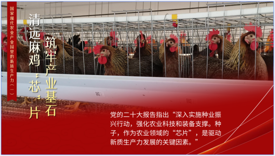 近年来,广东省清远市清城区国家现代农业产业园以清远麻鸡种业为基础,充分发挥广东天农食品集团股份有限公司、清农集团有限公司、清远市凤翔麻鸡发展有限公司等龙头企业示范引领作用,加强品种培育,提高产品性能。除了“配套系”的研究外,聚焦清远麻鸡种业新质生产力,产业园自主创新的故事还在继续……