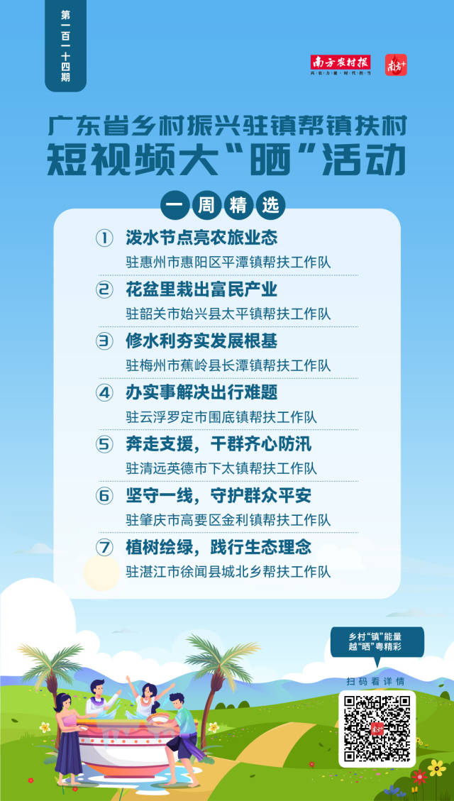 以“乡村‘镇’能量,越‘晒’粤精彩”为主题的广东省乡村振兴驻镇帮镇扶村短视频大“晒”活动于2022年2月全面启动。活动在南方+APP开辟专区,鼓励各驻镇帮扶 工作队比“晒”行动做法、成效亮点、实事好事。主办方每周将精选出部分优秀参“晒”作品进行展播。无论是晒工作经验做法,还是秀驻镇风采人物趣事,均有机会上榜驻镇帮镇扶村短视频大“晒”一周精选,敬请垂注!