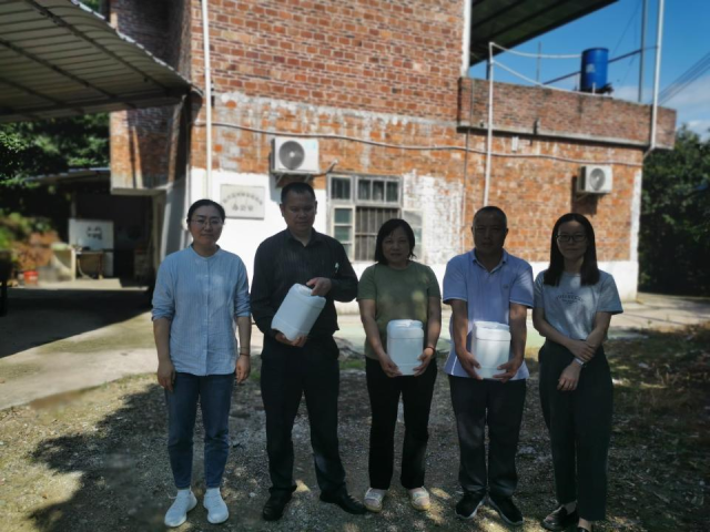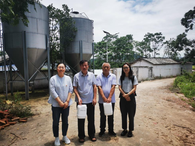 专家团队首先前往始兴县津泰养殖场和始兴县巫妹家庭农场开展灾后农业复产技术指导工作。经了解,连续多日的阴雨天气,不仅造成了畜禽养殖环境的恶化,对畜禽的生态健康养殖也造成了极大的影响,畜禽肠道健康问题、养殖环境污染问题层出不穷。针对上述问题,专家团队指导养殖场技术人员做好灾后的消毒防疫工作,并向两家养殖场赠送了动科所研发的复方益生菌发酵液,并向养殖场技术人员详细讲解了其功效及使用方法。该复方益生菌发酵液不仅能够有效改善畜禽肠道健康,提高生长性能,还能减少畜禽粪污中臭气物质的产生,降低养殖环境污染。