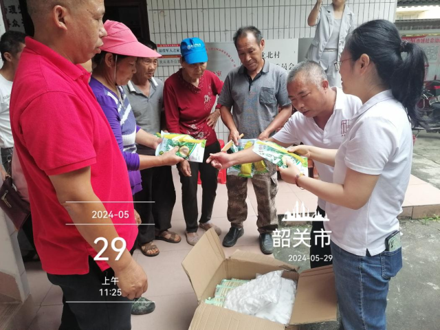 随后,动科所专家团队前往始兴县樱弘农业科技有限公司察看了樱桃树的受灾情况,并向其赠送了一批蚯蚓粪有机肥,用于缓解灾害对樱桃树的影响。此外,专家团队还前往受灾严重的农田察看水稻及其它农田的受灾及恢复情况,并为沈所镇受灾农户赠送优质玉米种和水稻种,助力沈所镇农业复产。