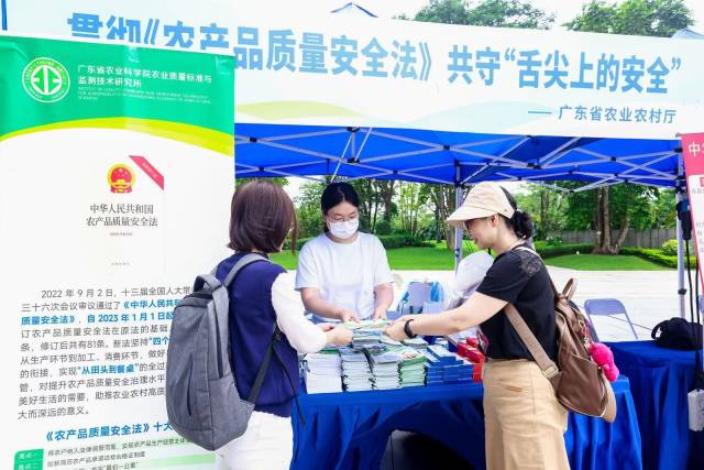 其中,普法宣传展位利用趣味普法、互动讲解、图文解读、派发普法文创产品和宣传资料等方式,宣传民法典、国家新出台的优化营商环境相关法律法规、社会广泛关注的政策措施。在普法宣传展位,“粤小安”人气十足,不仅吸引众多市民合影,还积极向公众普及新《中华人民共和国农产品质量安全法》,引导大家共同守护“舌尖上的安全”。