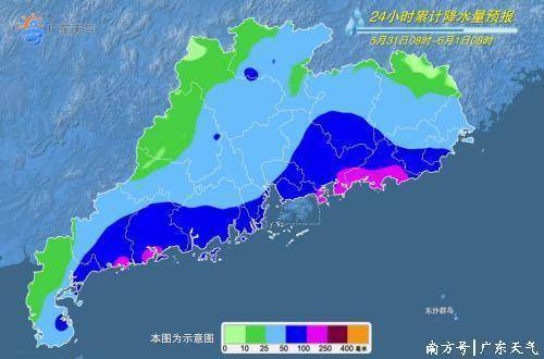 6月1日到2日早晨,河源东部、梅州和珠江三角洲东部市县、粤东市县阴天,有暴雨到大暴雨,局部特大暴雨;其余市县多云到阴天,中到大雨转阵雨。6月2日白天到夜间,中南部市县多云到阴天,有中雨局部大雨到暴雨;其余市县多云,有阵雨。