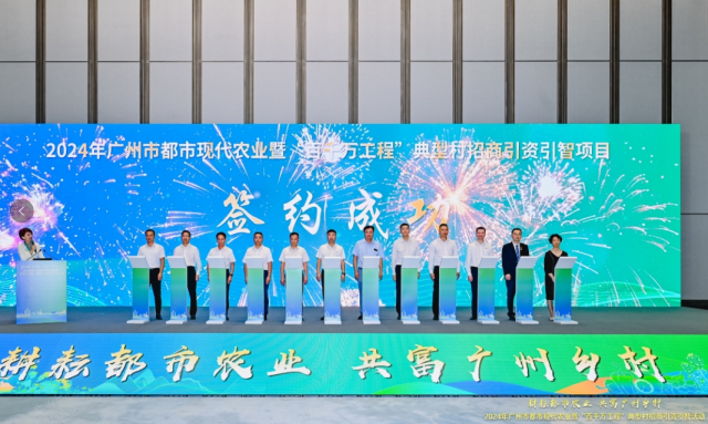 6月19日,“耕耘都市农业,共富广州乡村”2024年广州市都市现代农业暨“百千万工程”典型村招商引资引智活动在广州白云国际会堂举行。