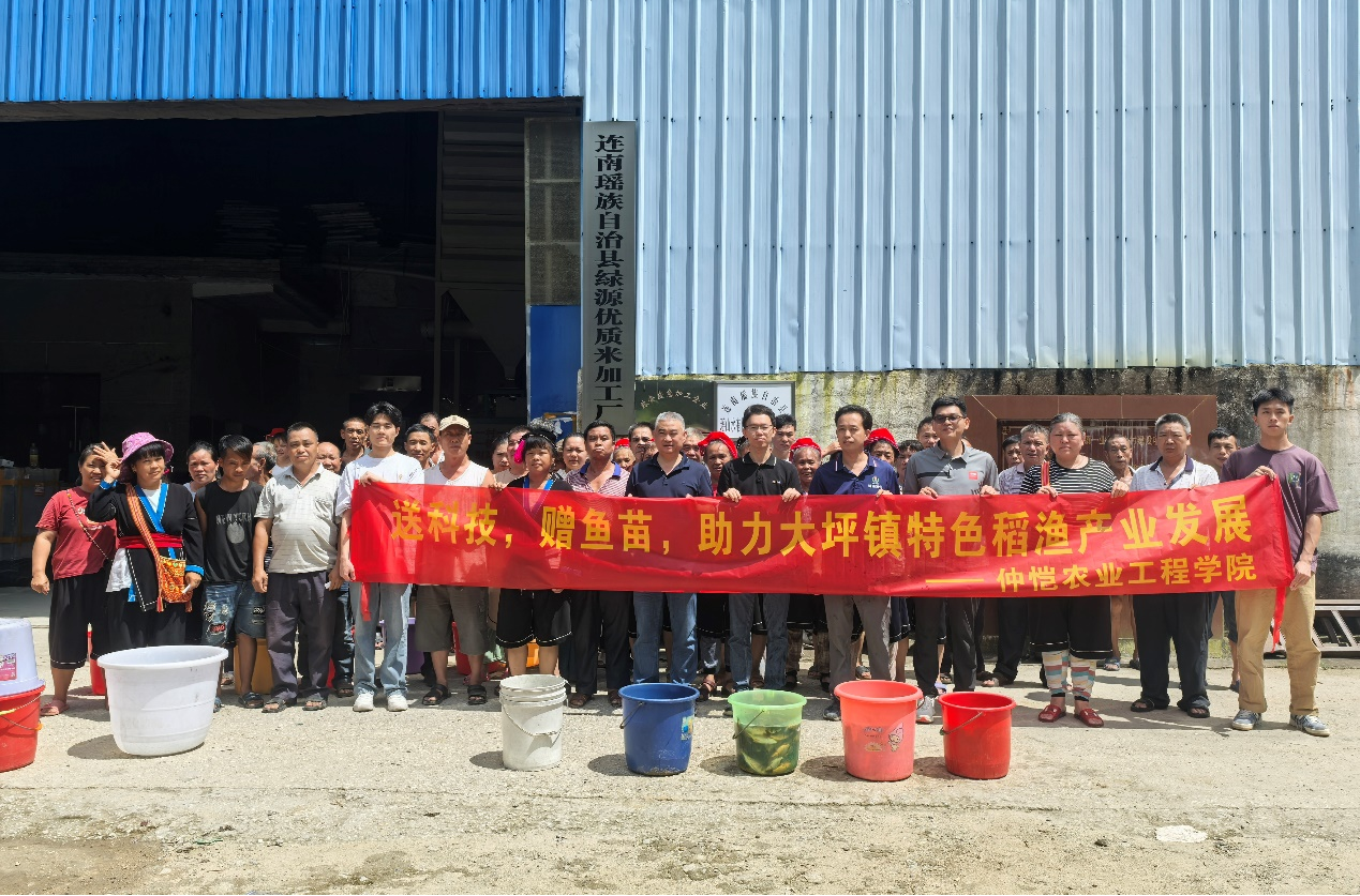 近日,仲恺农业工程学院开展“送科技,赠鱼苗”活动,向广东省清远市连南瑶族自治县大坪镇捐赠1800斤稻田鱼苗,资助该镇包括脱贫户在内约130户农户,助力当地乡村振兴建设,推进稻渔产业发展。