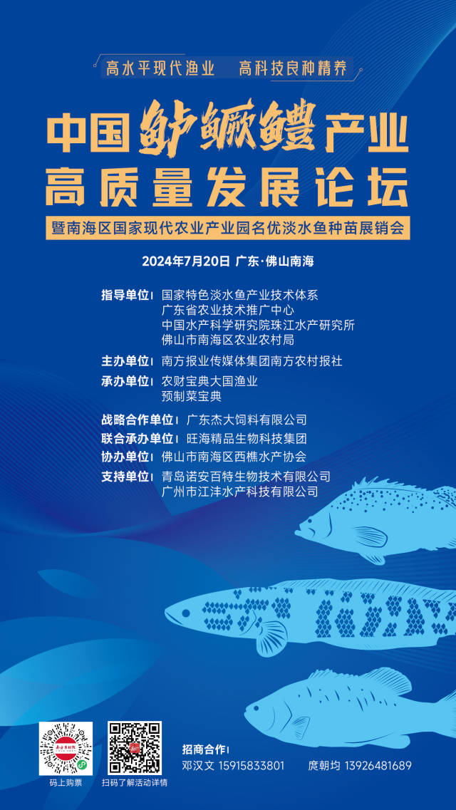 即日起至7月10日,扫描下方二维码即可参加本次养殖达人征集活动,同时报名中国鲈鳜鳢养殖达人等评比活动。相关评比活动将在2024年7月佛山南海举办的中国鲈鳜鳢产业高质量发展论坛暨南海区国家现代农业产业园名优淡水鱼种苗展销会现场进行颁奖。