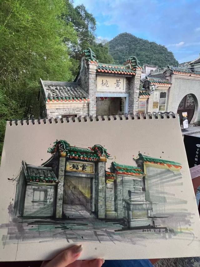 随着暑期的到来,在黄姚古镇艺术村研学基地,随处可见前来写生的游客,他们背着画架行走在青石巷道,或驻足沉思,于山水间汲取灵感,或用画笔绘画,将“峰丛古镇,梦境黄姚”映入纸间。