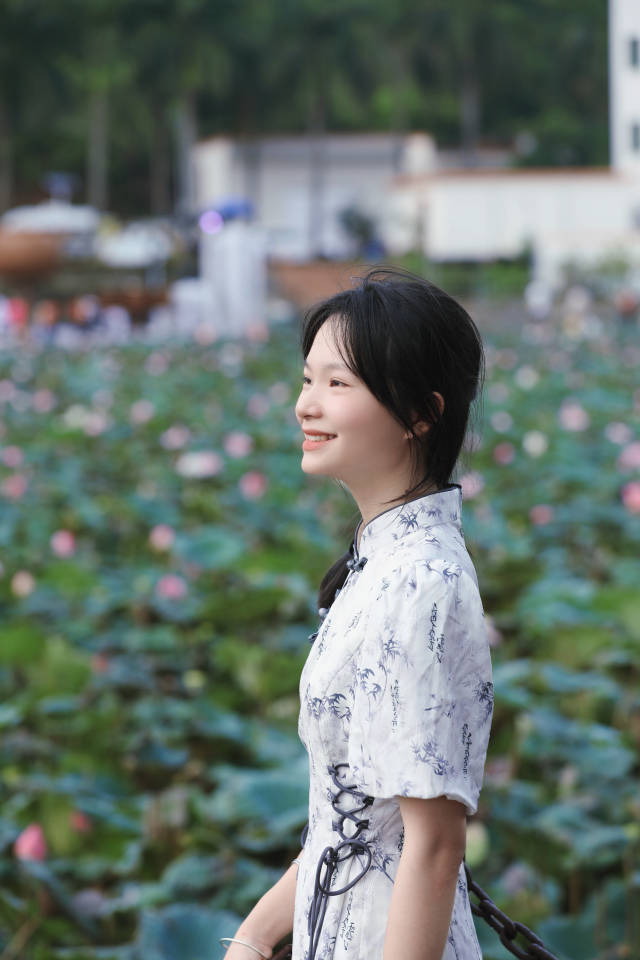 放眼望去,大片绿色的荷叶间,点缀着身穿旗袍、汉服的游客,她们在荷塘栈道上的打卡点“凹造型”,三五好友之间互相拍照,定格属于她们的荷塘记忆。大二学生小章暑假回家,约了朋友过来玩,她表示荷花主题的旅拍很出片,拍的照片足以在朋友圈凑成一个“九宫格”。
