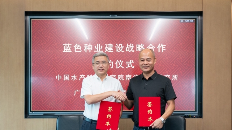 南沙区农业农村局与广州南沙华农渔业研究院进行签约。