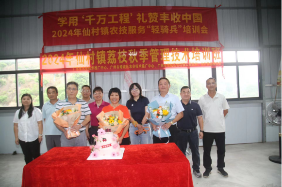 近日,广州增城区仙村镇荔枝协会在仙基农业荔枝种植基地举办“学用‘千万工程’礼赞丰收中国”——2024年仙村镇农民丰收节活动暨仙村镇农技服务“轻骑兵”培训会,以“培训”庆丰收,并为构建明年的荔枝丰收图景打下基础。
