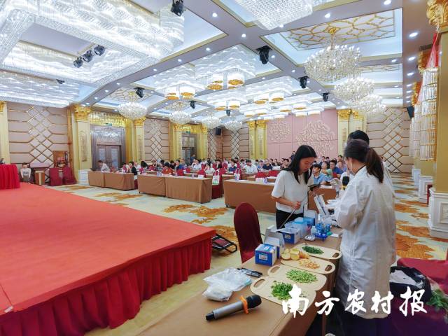 培训现场,还对农兽药残留的快速检测技术进行了全方位实操演示。手把手指导高校食堂采购人员在葱、苹果、鱼肉、豇豆和芹菜等农产品上采用胶体金速测试纸快速检测农兽药残留情况。