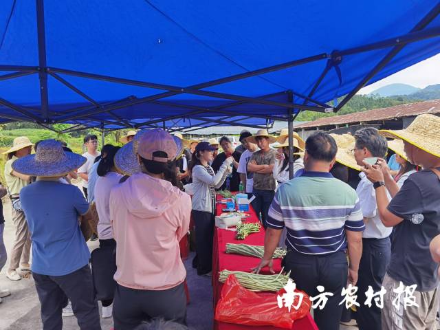 培训班还设置了豇豆种植基地的实地教学环节。质标所科技人员现场演示了豇豆农药残留快速检测的规范操作,介绍了速测应用的技术要点和注意事项,并向基地赠送了速测产品。广东省农业科学院植物保护研究所专家针对豇豆田里的实际生产情况讲解了豇豆主要病虫害绿色防控技术,并与参训人员就生产中遇到的问题展开热烈交流。