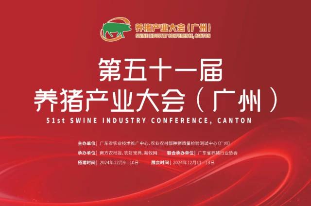 为了增强养猪行业的技术与理念交流,推广先进养殖品种与方法,链接各方资源与企业,促进养猪产业进一步高质量发展,2024年12月11-13日,备受业界瞩目的第五十一届养猪产业大会(广州)将在广州柯木塱盛大举行。
