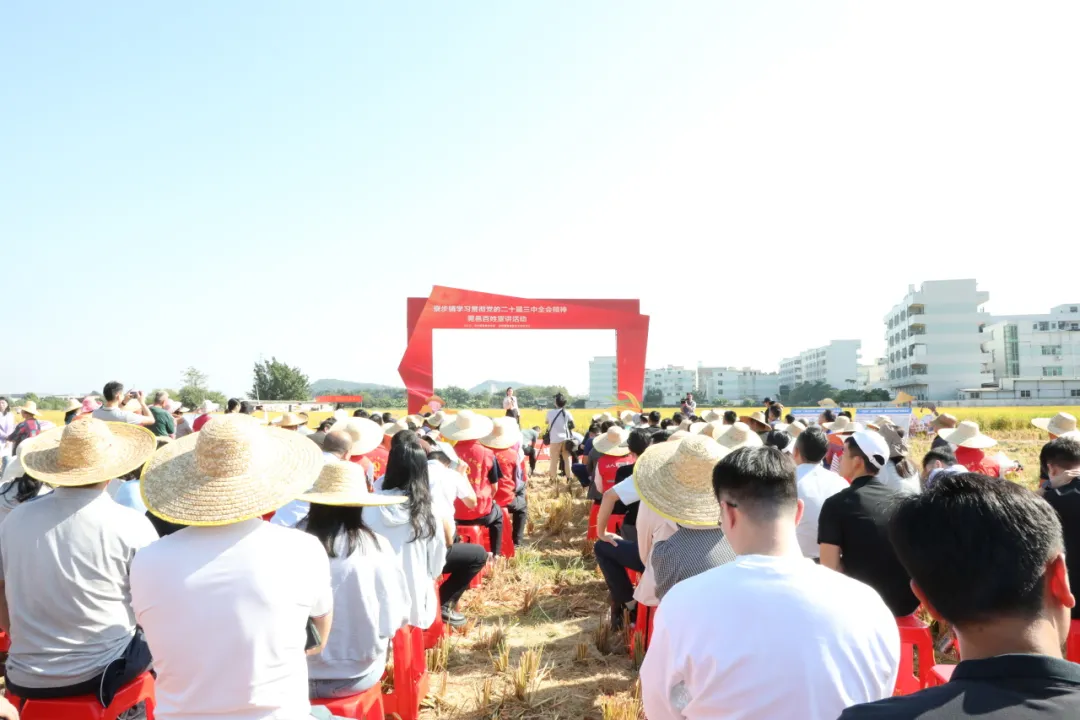 本次活动把宣讲搬到稻田里,把党的二十届三中全会精神送进了大家的心里。宣讲活动最后,镇外国语初级中学王文娜老师演唱了歌曲《在希望的田野上》。宣讲活动后,镇领导黎德庆、尹柳嫦、黄灿光,镇机关、企事业单位党组织党员代表、师生代表等300余人在水稻田体验收割过程,传承农耕文化,共享丰收喜悦之情。