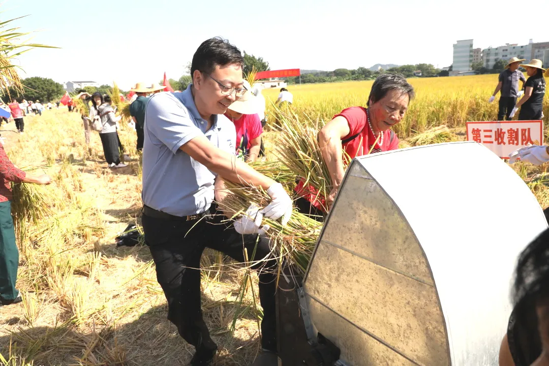 又是一年丰收季,寮步稻谷飘香,大地流金。今天上午,“感党恩庆丰收促和美话发展”寮步镇学习贯彻党的二十届三中全会精神莞邑百姓宣讲活动在香市农业产业园稻田举行。宣讲活动后,镇机关、企事业单位党组织党员代表、师生代表等300余人在水稻田体验收割过程,传承农耕文化,共享丰收喜悦之情。镇领导黎德庆、尹柳嫦、黄灿光参加活动。