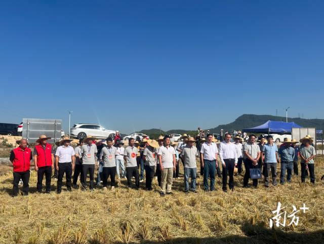 广东省农业技术推广中心农机部副部长姚俊豪也指出,机收减损是水稻产业链条上减损的重要环节。现场这块比赛田也是广东省开展“水稻机械化合理密植提单产”试验田,同时举办“机收减损”活动,从提单产、减损失两端发力,为广东粮食丰产丰收积极探索。广东水稻种植面积常年稳定在2700多万亩左右,机收率已超过90%,按照全省平均机收损失率下降1个百分点计算,每年可增加粮食约1亿公斤,这个数字相当可观。