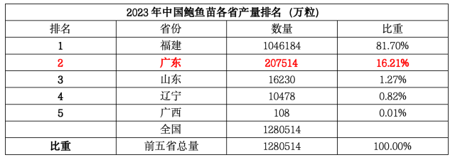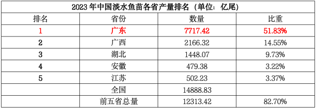 2023年各类水产种苗排行榜