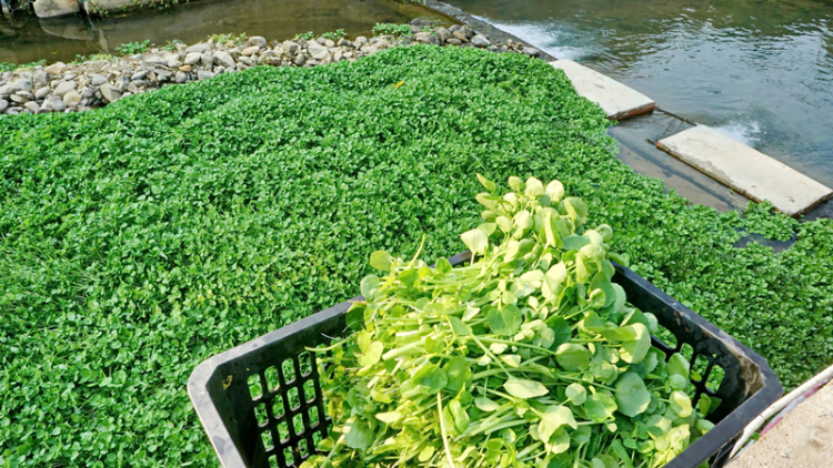 正在“畅饮”当地山泉水的阳山西洋菜。