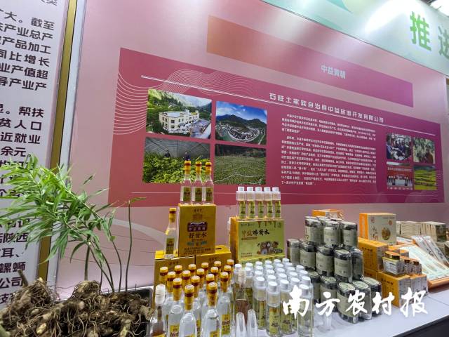 在重庆市石柱土家族自治县中益乡展位,来自乡野田间的“土特产”,蕴含着浓浓乡情。2018年底,华溪村种下第一批220亩黄精。2019年,一些村民就通过种植黄精、土地入股分红、管护药材基地等方式,实现了脱贫。构建起从育苗、种植到精深加工的全产业链。当地黄精面业有限公司生产的黄精面条,已出口至澳大利亚、新加坡、南非等11个国家和地区,总量超过100吨,总金额约600万元。