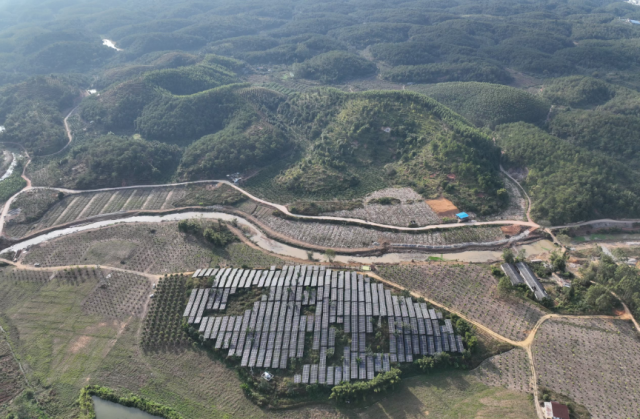 目光转向万安村的山地,太阳能面板宛如精密布局的棋盘般铺展开来,这里曾经是一片近50亩的荒地,现在正开发成集中式光伏基地。依托光伏产业,万安村集体经营性收入每年增加5万元以上。