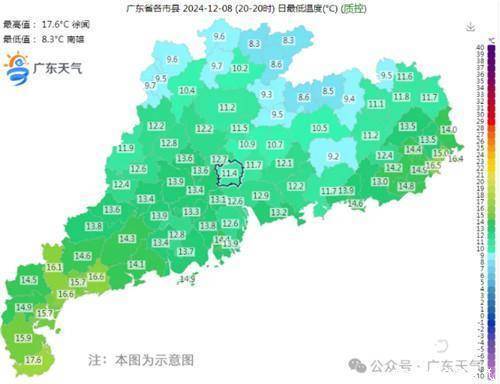 预计,9日早晨大部气温达到过程最低,粤北局部有5℃左右低温,9日白天到10日冷空气减弱,气温回升。11日白天新一股冷空气开始影响粤北,夜间到12日早晨影响中南部市县,气温再次下降。