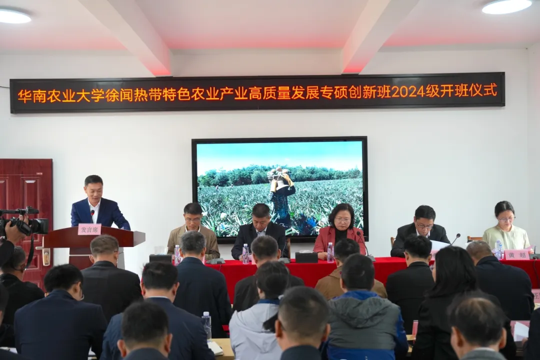 当天上午,在华南农业大学乡村振兴服务站徐闻总站“牛哥驿站”内举办了徐闻热带特色农业产业高质量发展创新班2024级开班仪式。徐闻县委书记罗红霞,县委常委、组织部部长陈家墨,华南农业大学有关领导以及相关乡镇领导出席本次活动。