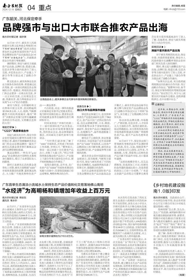 近年来,从粤桂合作、到粤黔合作,再到今年粤吉两省化橘红、人参牵手,广东省农产品“12221”市场体系作为经过检验的农业现代化、市场化发展的正确路径,在汇聚共识、指引方向上发挥着不可替代的作用。