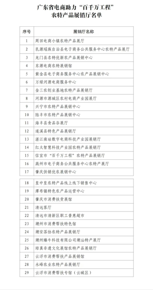 近日,广东省商务厅正式公布了农村电商助力“百千万工程”农特产品展销厅名录,全省范围内共有29个展销厅入选,成为广东推动农产品上行、促进乡村振兴和农村经济发展的新动力源。