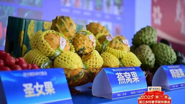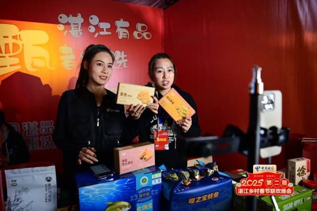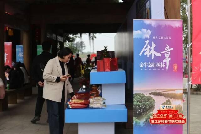现场的农文旅展区同样人气爆棚。皮脆肉香的麻章烧猪、清香软糯的艾叶饼、饱含美好寓意的年糕等麻章特色美食一一亮相,吸引着观众们驻足。海红米、释迦果、圣女果等湛江特色水果,景田矿泉水、湛江生蚝、年糕、腊肠等各类“明星湛品”也纷纷出圈,为观众带来一场味觉与视觉交融的双重盛宴。