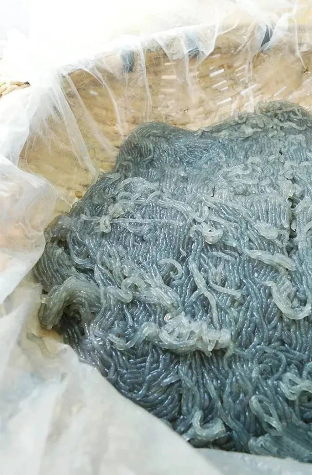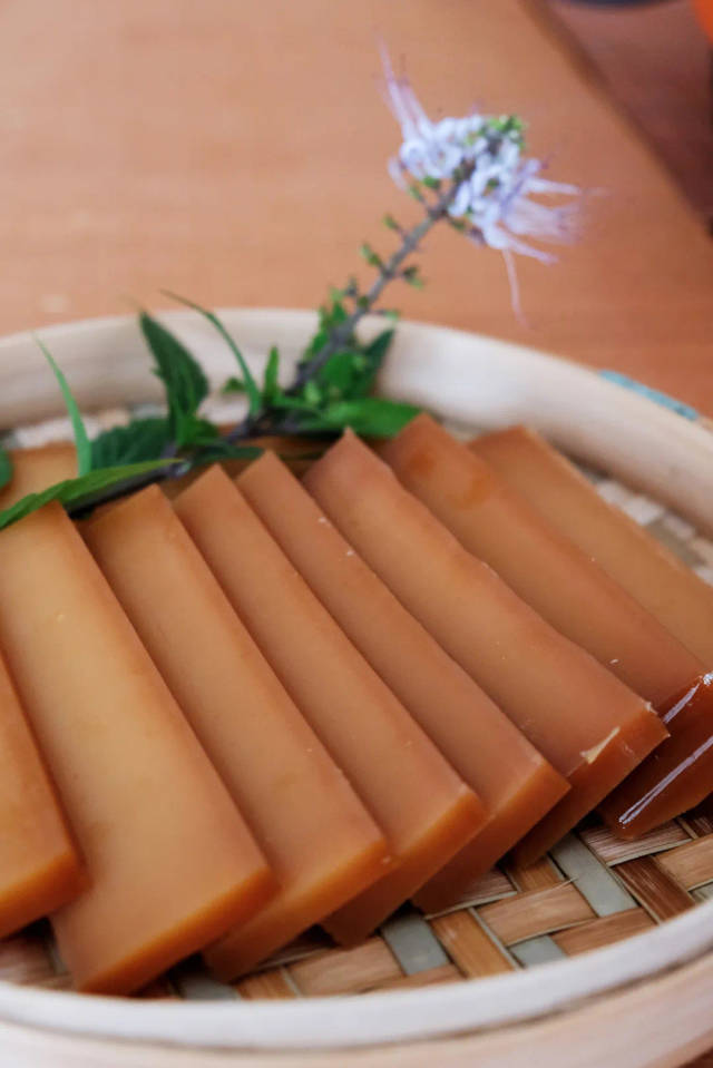 午饭过后,“长身体”中的小孩会向大人“讨食”,这时候当地特色小吃“鸡屎藤”登场了。鸡屎藤有祛风活血,消食导滞,除湿消肿等功效,其粉皮有生叶独特的原生臭味,在高温蒸煮后,粉皮变得软滑柔嫩,久闻有一股淡淡青草味。