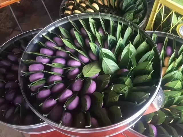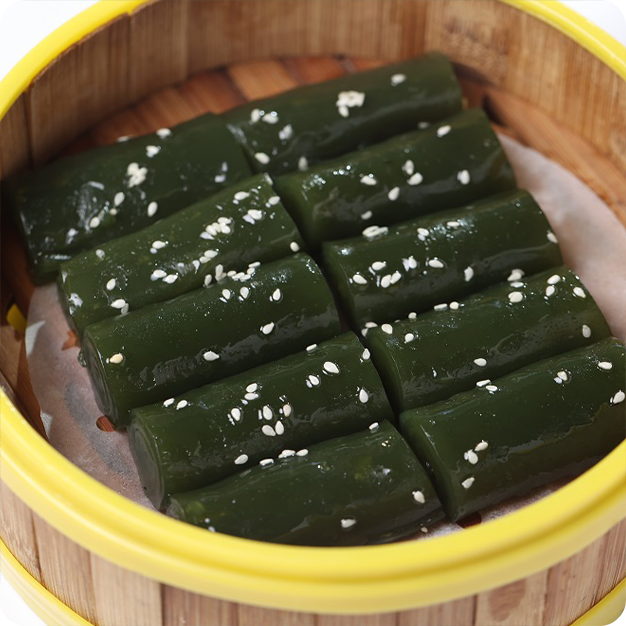 经历下午的出街游玩,疲惫的身躯会有饥饿感,当地人会在街边档买叶搭饼充饥,享受惬意的下午茶时光。巴掌大小的叶搭饼,选用糯米做皮,用花生米、椰子丝、冬瓜糖、枣仁等做馅,捏好的“饼”搭盖上两片菠萝叶,有“好事成双”的寓意,蒸熟后就大功告成。